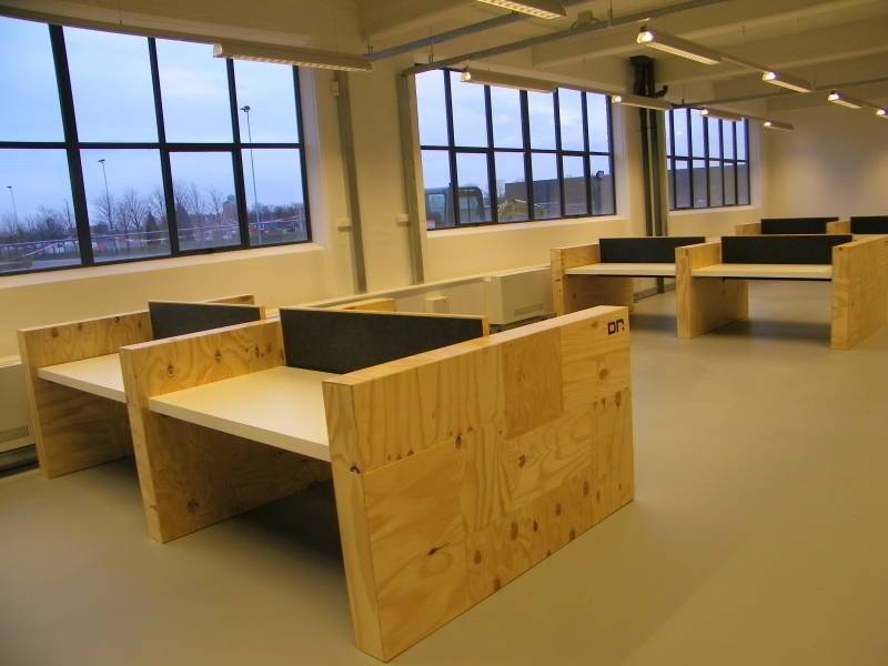 Achterzijde bureau met akoestische achterwand.