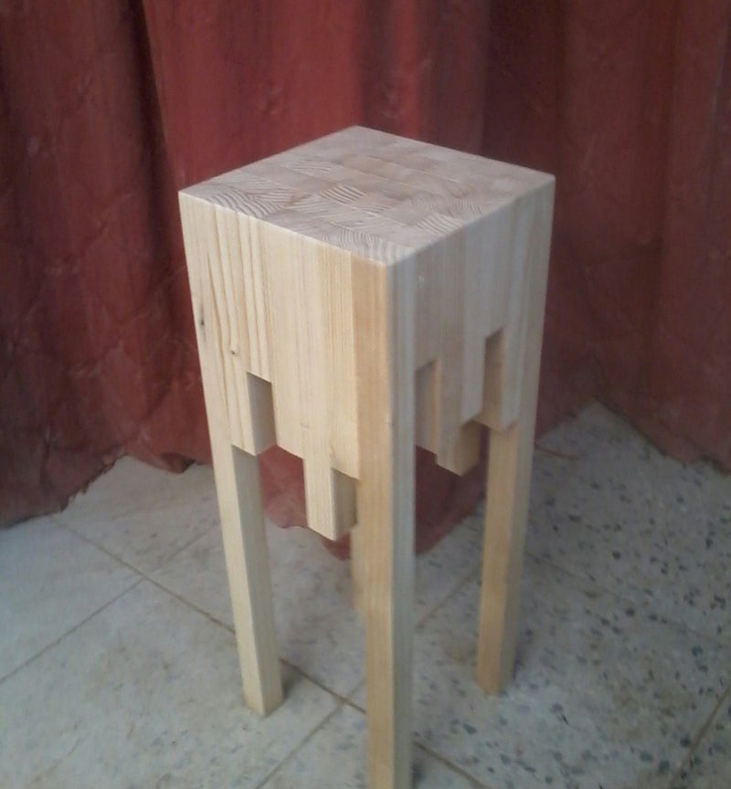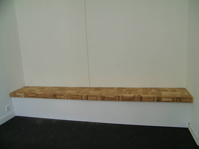 Bankje met eiken blokjes.