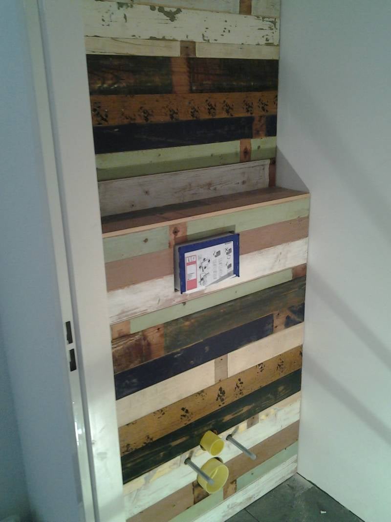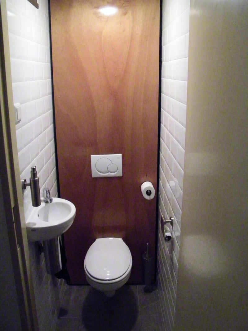 Achterwand hangend toilet. Watervast multiplex.