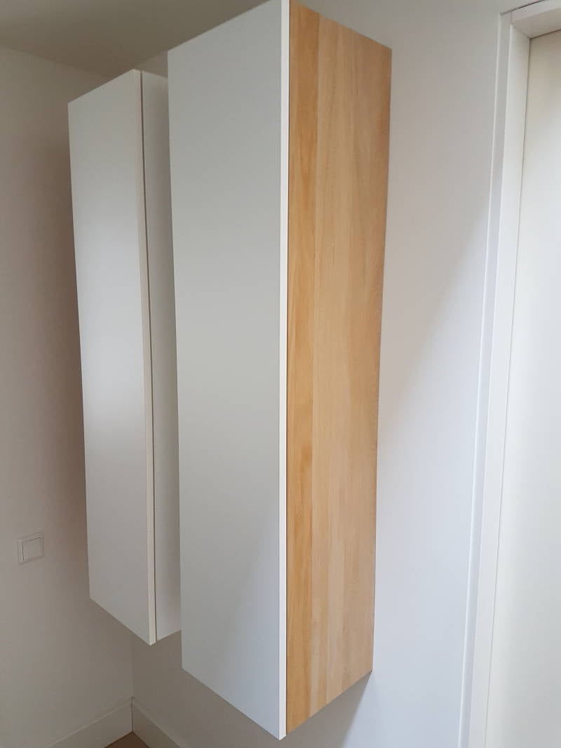 (Badkamer-)kastjes met 1 buitenkant van massief eikenhout.