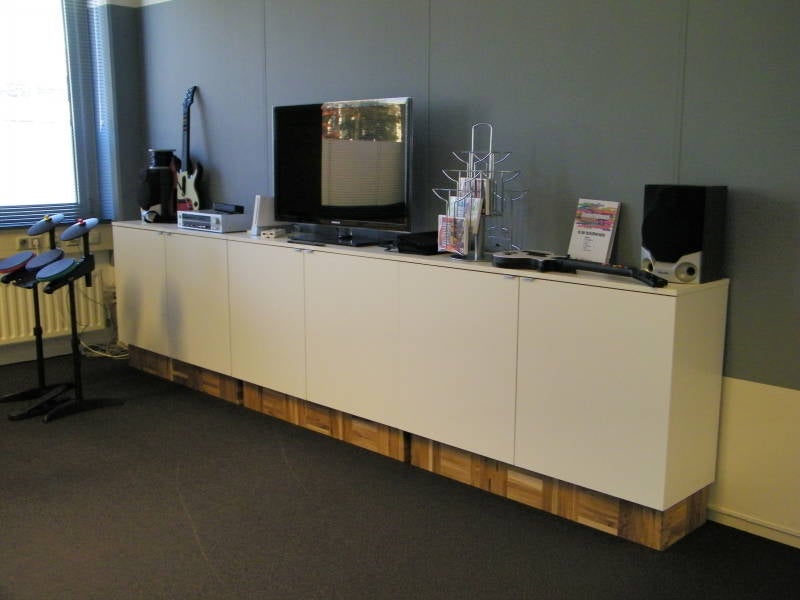 Dressoir met plint van eiken blokjes.