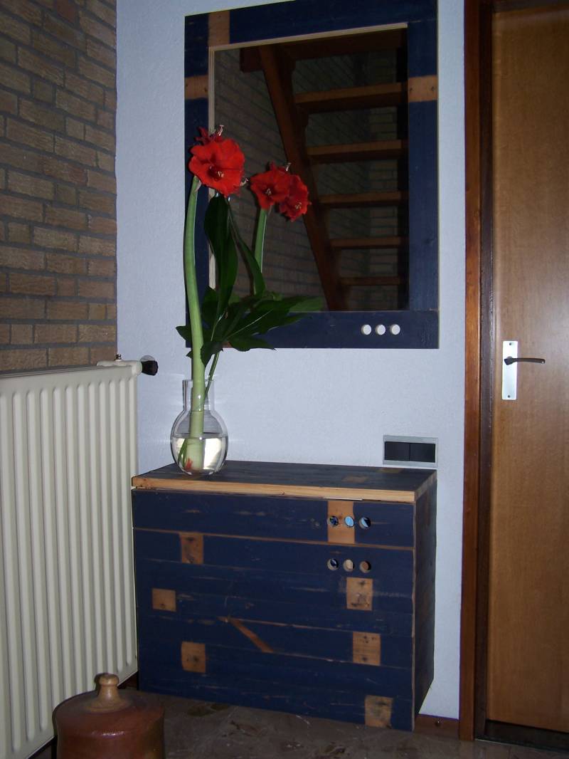 Dressoirtje met antieke spiegel.